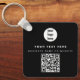 Um moderno chaveiro de negócios minimalista personalizado com logotipo de negócios e código QR. Personalize com seu logotipo, código QR e detalhes para criar seu próprio chaveiro de negócios preto e branco, elegante e exclusivo. Personalize ainda mais com um fundo ou fonte de cor personalizado.