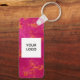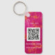 Código QR Logotipo comercial, chaveiro profissional, personalizado de lado duplo. Rosa, design simples. Perfeito para a sua empresa. chaveiros promocionais.