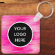 Código QR Logotipo comercial, chaveiro profissional, personalizado de lado duplo. Rosa quente, design simples. Perfeito para a sua empresa. chaveiros promocionais.