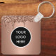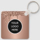 Código QR Logotipo comercial, profissional, rosa gold, chaveiro de lado duplo personalizado. Design simples. Perfeito para a sua empresa. chaveiros promocionais.
