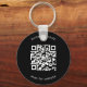 Chaveiro personalizado com o seu código QR com o seu nome comercial acima e a sua mensagem abaixo sobre um fundo preto. Esses chaveiros simples fazem itens de promocional de excelente para dar a clientes, funcionários ou como pancada em shows e eventos comerciais. Divirta-se com seu marketing e publicidade. Esses Chaveiros de código QR são especialmente excelentes para os corretores/agentes imobiliários darem como presentes de fechamento para seus clientes.