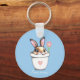 Chaveiro Coelhinho inteligente com flor e coração no azul c
