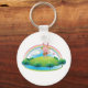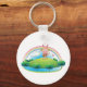 Coelhinho rosa tocando violão no alto de uma colina com um arco-íris. Esta design parece realmente eficaz nestes Chaveiro