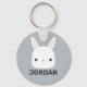 Uma design para animar o seu dia. Este design apresenta um coelho bonito com um nome personalizado no estilo de fonte sans serif moderno da cinza sobre o fundo da cinza de luz. Presentes personalizados perfeitos para crianças.