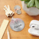 Um fundo metálico de aparência fina prateada decorado com pingos de brilho rosados, aparência de pingar. Personalize e adicione um nome e iniciais de monograma. O nome é escrito com um moderno roteiro de estilo escrito à mão. Letras pretas e brancas coloridas.