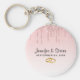 Uma chaveiro de casamento simples e moderna. O fundo tem uma imagem de brilho rosado cinza-rosado ao longo do topo. O resto do fundo é um delicado gradiente cor-de-rosa pastel. 2 bandas de casamento douradas abaixo do texto personalizado.