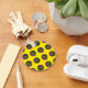 Design abstrato circular colorido de amarelo, rosa, magenta, verde.