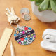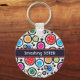 Chaveiro com almôndegas coloridas e círculos pretos em fundo branco. Perfeito como presente para um jogador de picleball em moda. Texto personalizável. Feliz visto e melhores votos para os seus futuros jogos!