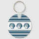 Design náutico com conchas azuis e decoração de listras em fundo branco