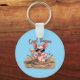 Leitão de óculos de sol sentado na lama com um coquetel e a divisa "Cool Bacon" em um chaveiro de fundo azul.
