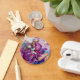 Corneta colorida, branca, rosa-rosa engraçada, tocando coruja com uma coruja expressiva e notas musicais alegres, flores, folhas em vermelho vibrante, fúcsia, violeta, roxo, azul, cores brancas, pintura aquarela de Búlgaro Lumini (c)