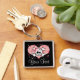 Um gótico contudo coração feminino e anel personalizado do chaveiro do crânio e o chave com um fundo cinzento e cor-de-rosa do grunge do splatter. Personalize estes crânio bonito e corrente chave de crossbones com um fundo do coração com seu próprio nome ou o que quer que você quer dizer nele. © Chrissy H. Estúdio dos trabalhos de arte, LLC. Todos os direitos reservados.