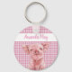 Chaveiro Cor do porco rosa Aquarela Gingham Xadrez Monogram