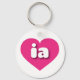 Esta cadeia-chave apresenta um coração rosa-quente vibrante contendo as letras maiúsculas, brancas, em negrito, arredondadas i a, uma abreviação lúdica para o estado de Iowa, o estado dos olhos falcões.