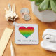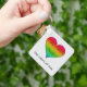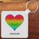 Esta é uma design sobre amor e felicidade, apresentando uma forma cardíaca colorida com arco-íris com um rosto sorridente. O texto editável na frente é "As cores do amor", e no reverso a sugestão é personalizar com um nome. O coração é repetido na frente e na parte traseira do chaveiro padrão (Impressão unilateral na versão Premium). Adorável para Dia de os namorados, ou um gafanhoto de natal, ou um aniversário, aniversário ou qualquer ocasião feliz.