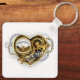 Cardíaco mecânico, volumétrico e steampunk com manômetros de pressão, de aço e de ouro sobre fundo branco. Estilo Steampunk.