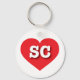 Essa cadeia-chave apresenta um coração vermelho vibrante contendo as letras maiúsculas, brancas e em negrito SC, a abreviação oficial da Carolina do Sul, o estado de Palmetto.