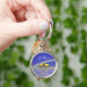 Chaveiro com meu trabalho de arte de dois ouros flutuando na água sob um arco-íris. O texto diz "50 Anos".