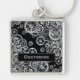 Corrente de chave estilo Steampunk, com fundo preto com engrenagens prateadas tridimensionais.