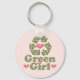 Um design de símbolo polk-a-ponto verde e branco com um coração cor-de-rosa no seu centro. O texto da menina verde está em verde com polk branco um ponto flanqueado por dois corações e um coração pontilhando o "i". Corda-chave para o seu carro, dormitório, apartamento ou chaves domésticas que mostram a sua paixão de reduzir, reutilizar e reciclar.