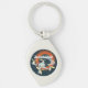 Vintage ao estilo Sci-fi drone correndo chaveiro de metal temático com texto personalizável.