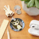 Esta adorável e útil chaveiro apresenta uma coruja marrom, rosa, numa árvore. Um presente perfeito para um amante da Coruja de todas as idades.