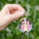 Esta adorável chaveiro mostra uma coruja rosa colorida numa árvore. Um presente perfeito para um amante da Coruja de todas as idades.