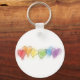 Uma fileira de corações coloridos do arco-íris em tons de aquarela.