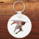 Um macho rubi gargantanoso se estica enquanto se senta no seu poço.