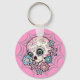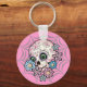 Crânio de açúcar Dia de los Muertos desenhado em cores pastéis com flores colocadas em uma teia de aranha.