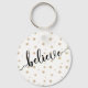 Lembre-se de acreditar em você com esta chaveiro. Este design apresenta um fundo falso de pontos brilhantes com a palavra Acreditar em um script de caligrafia de rico. #Acredite