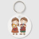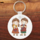 Duas crianças, um menino e uma garota segurando alguns brinquedos. Esta design parece realmente eficaz nestes Chaveiro