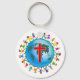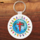 Ótima ilustração de um grupo de meninos e meninas diferentes que dão as mãos em um globo do mundo e uma cruz vermelha representando a fé no Cristo. Personalize e escolha facilmente a sua própria cor de fundo. Imagem disponível em vários presentes e produtos.