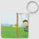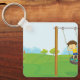 Um grupo de crianças brincando num parquinho no parque. Esta design parece realmente eficaz nesta Chaveiro