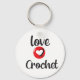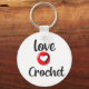 a cadeia-chave de uma pessoa que ama fazer crochê ajuda a manter o controle das suas chaves com esta cadeia-chave, letras grandes pretas e um grande coração vermelho "ame 2 crochet" personalizam o dorso.