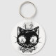 A bold black-and-white illustration of a stylized cat head with X-marked eyes, a mischievous grin, crossed bones below, and a crown above, giving it a punk-gothic vibe.