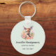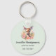 Uma cadeia-chave com uma bela ilustração com um veado fofo. Cercados por rosas e flores cor-de-rosa.