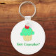 Tenho Cupcake. O chaveiro personalizável diz "Ganhei Cupcake com um cupcake verde colorido, aspersores e cereja no topo."