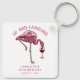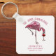 Cute personalized 50th birthday party flamingo gag keychain. Add your name and message by clicking on the "Personalize" button to create a unique party swag for your celebration. Makes a perfect keepsake for guests to remember this special milestone.