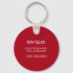 Personalized red and white keychain, with space for your name, address, and phone number. The background color is customizable using Zazzle's design tool.