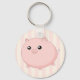 Um porco cor-de-rosa muito bonito no estilo kawaii, gordinho, em princesa riscada, rosa e branco creme