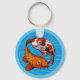 Two cute koi carp on a keychain. One is gold, one tricolor. The pair are swimming in a circle like a Yin Yang symbol, on a blue background. My version of a traditional theme often used in tattoo designs.