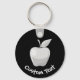 Maçã prateada com ícone de folha. Cor de fundo personalizada. Texto personalizado de ambos os lados.