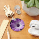 Este bonito chaveiro floral apresenta uma fotografia lindamente detalhada de uma flor margarida africana. A foto foi alterada digitalmente, resultando em uma bonito flor púrpura com diferentes tons de púrpura nas pétalas e um centro roxo escuro.
