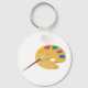 Este design é uma paleta de pintores. A paleta tem várias tintas coloridas diferentes e um pincel. Este design de paleta de pintores parece excelente neste Chaveiro
