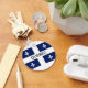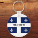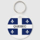 Uma bandeira azul e branca da província de quebec com palavras dizendo que quebec faz um bom chaveiro.