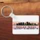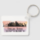 Chaveiro apresenta a silhueta de linha do horizonte da cidade de Dallas Texas com abertura de cor d'água e coordenadas de latitude e longitude