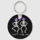 Comece a dançar com estes esqueletos com esta corrente chave para uma celebração do Dia das Bruxas. Estes esqueletos estão dançando um jig e estendendo um convite para vocês com as palavras para "dançar comigo". A mão pintada na arte original apresenta esqueletos dançarinos com chapéu roxo em seus crânios e está nas cores preto e branco com roxo e verde limão para bordas ou sotaques. Procure meus outros produtos com esta arte para produtos de luxo para o Halloween incluindo convites, cartões de saudação, camisetas e muito mais. Totalmente personalizável para personalização. A arte original é de Phyllis Dobbs que deseja um feliz e brilhante Dia das Bruxas.