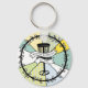 Cadeia de chave personalizada para um casal. Ele tem o tema do golfe de disco e o fundo de pop de arte lacrimejante e amarelo. Bonito presente para recém casados que gostam de jogar golfe.