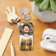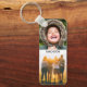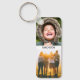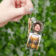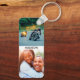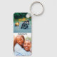 4 fotos personalizadas de impressão de borda e nomes de sua escolha em um chaveiro de metal com cantos arredondados.
